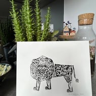 As well as printmaking being one of my passions I love textile art. Particularly freestyle embroidery. I like naive style art and illustration and wanted to make a doodle with stitching. Letting the sewing machine move across the fabric, a bit like drawing with a pen and not lifting the pen from the surface.
