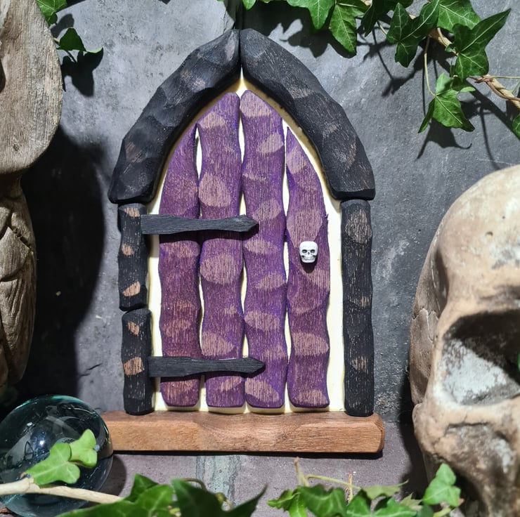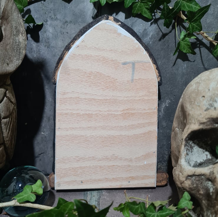 Anyone who knows the Fae would know full well not all are fluffy and full of sparkles! In the dark depths of any garden they lurk ready to bewitch the passers by. The Goblyns and Dark Elves need doors as much as any Fair Fairy, and these Dark Doors will make them as happy as they can ever be. Forbidding and creepy to look at during the day, the glow in the dark backing (we mix ourselves) gives the effect in the deep night that the lights are on behind the doors, and dark plots are afoot.