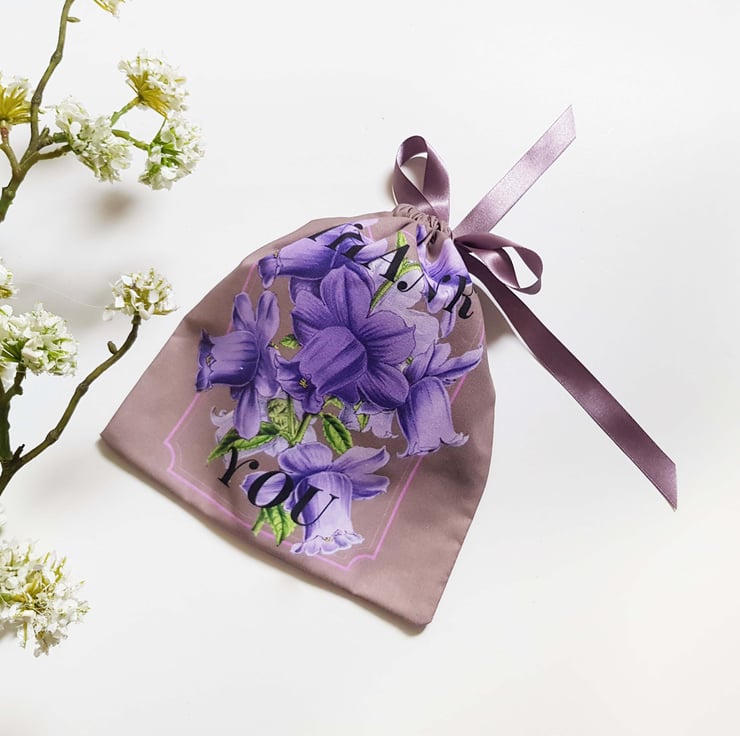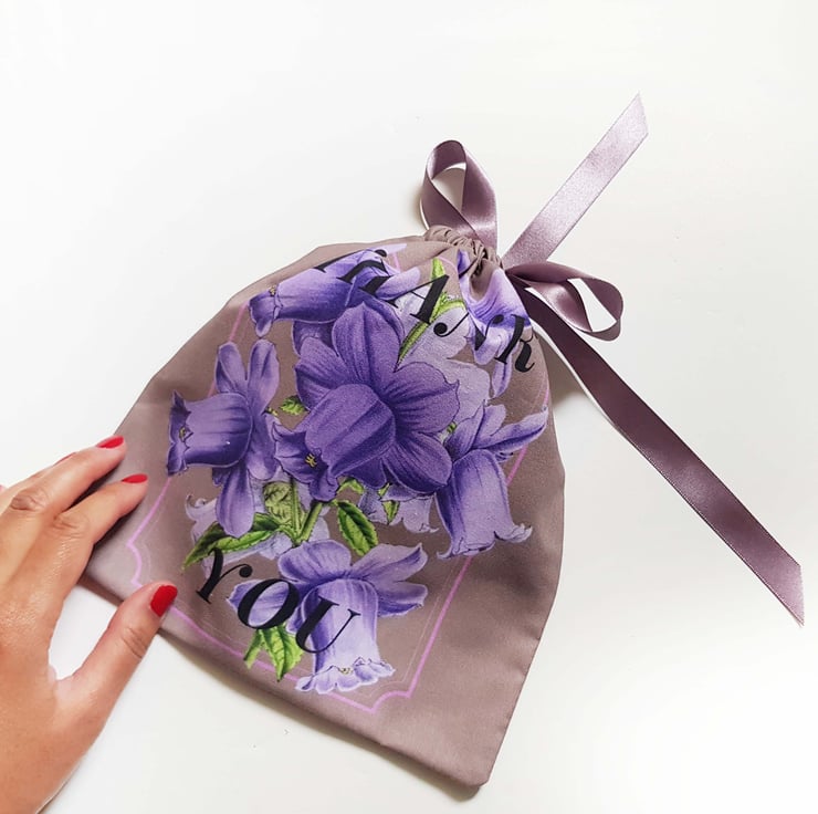 I wanted to incorporate this idea into my handmade gift bags, where the symbol of a flower was placed onto a pouch, which would hold a gift and could be reused over and over again.