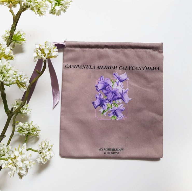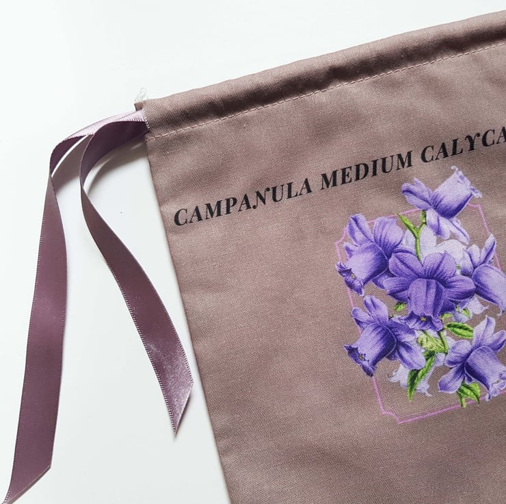 - Digitally printed botanical Campanula (Bellflower/Canterbury Bells) with 'Thank You' and botanical name on the back.