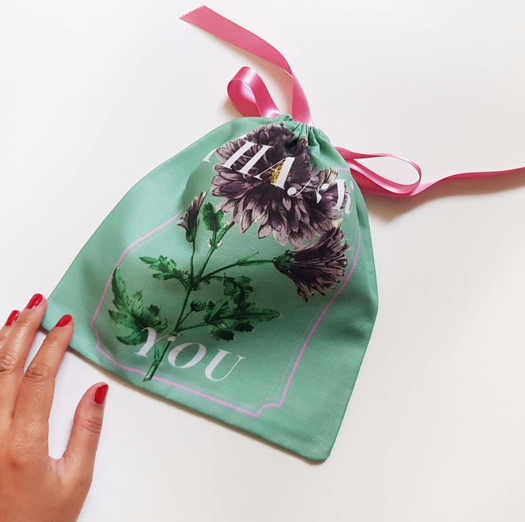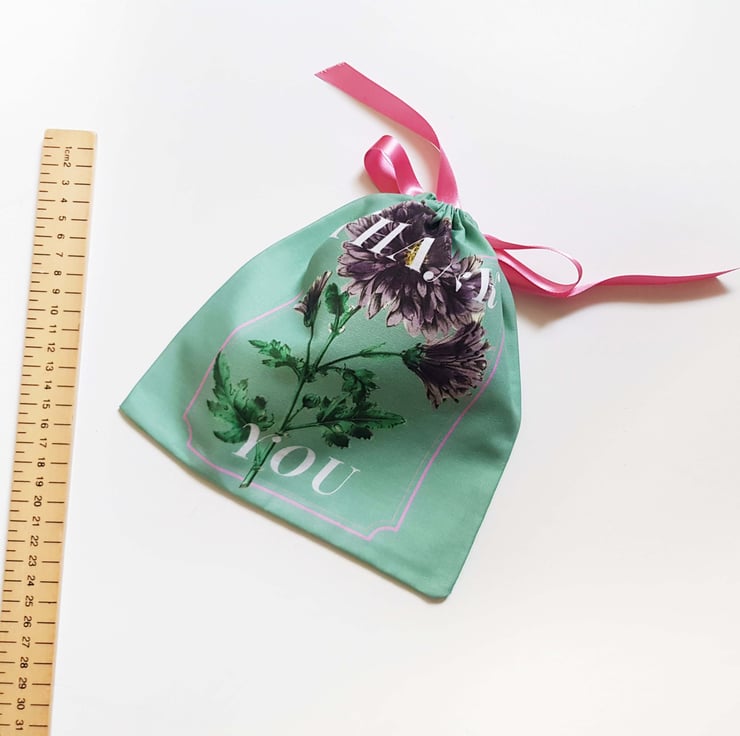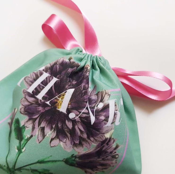 I wanted to incorporate this idea into my handmade gift bags, where the symbol of a flower was placed onto a pouch, which would hold a gift and could be reused over and over again.