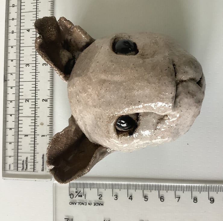 Small cat head raku fired and glazed, hence the Smokey feel. Posted second class with proof of postage. Dimensions as shown in the photo.