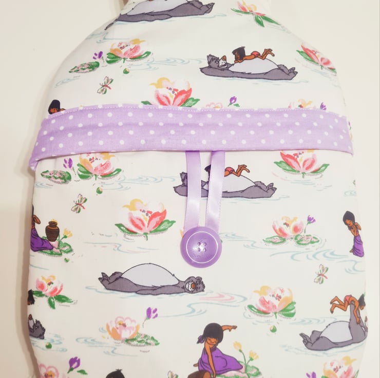 Hand made hot water bottle cover (comes with 2 litre hot water bottle) made in Cath Kidston Jungle Book fabric.