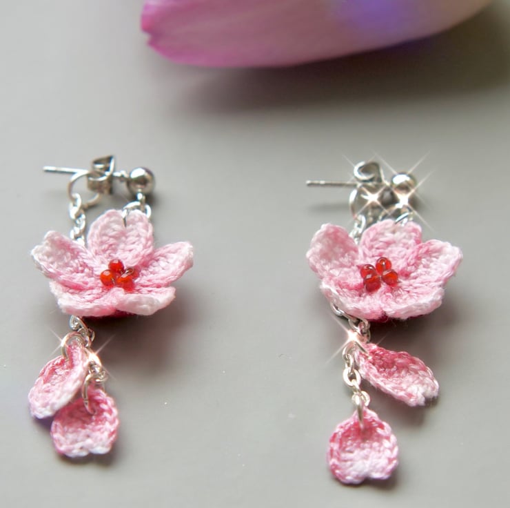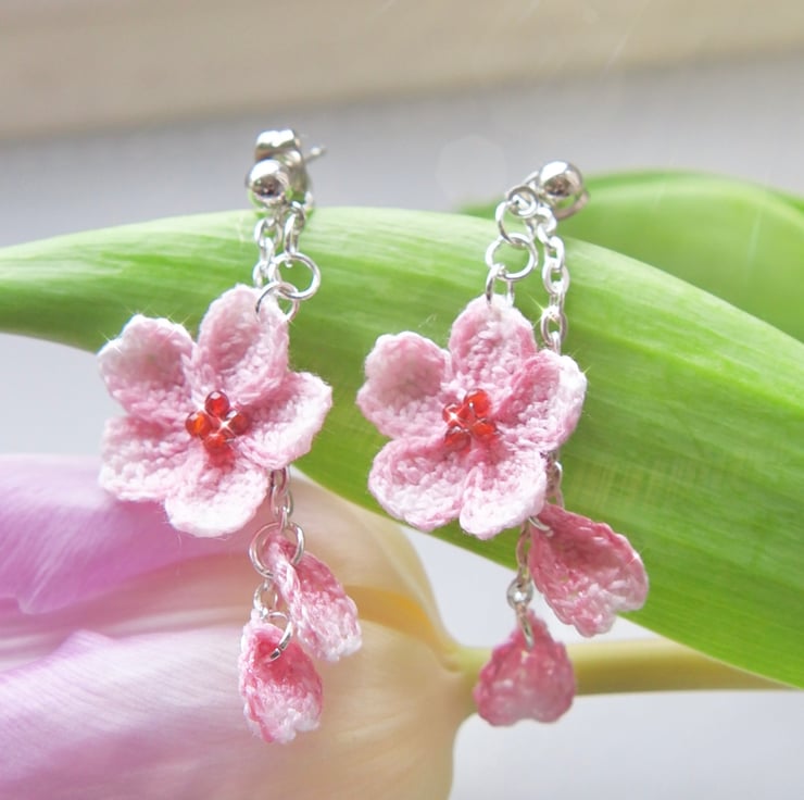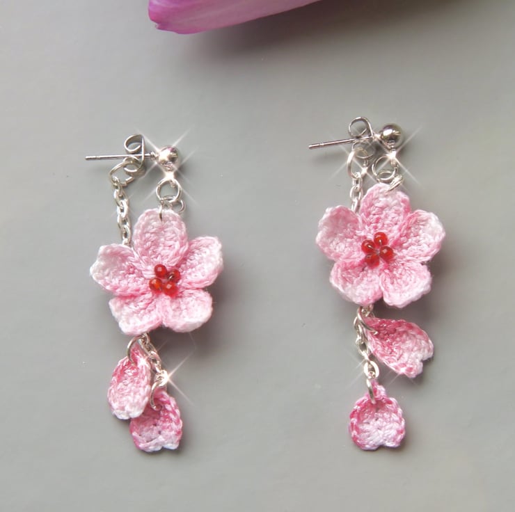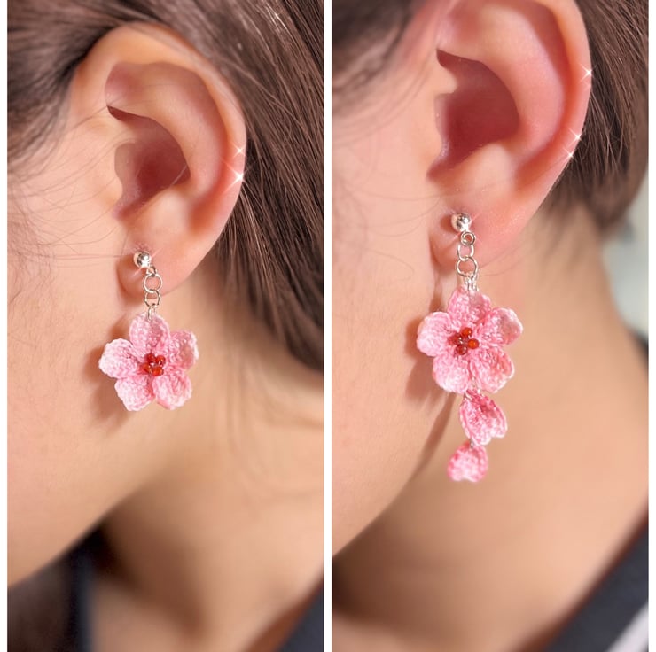 Cherry blossoms stud drop earrings can be worn with or without ear jacket.