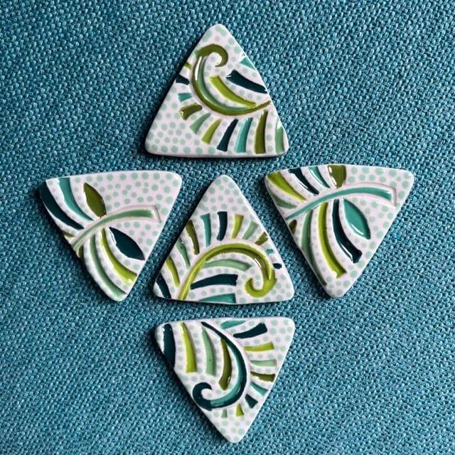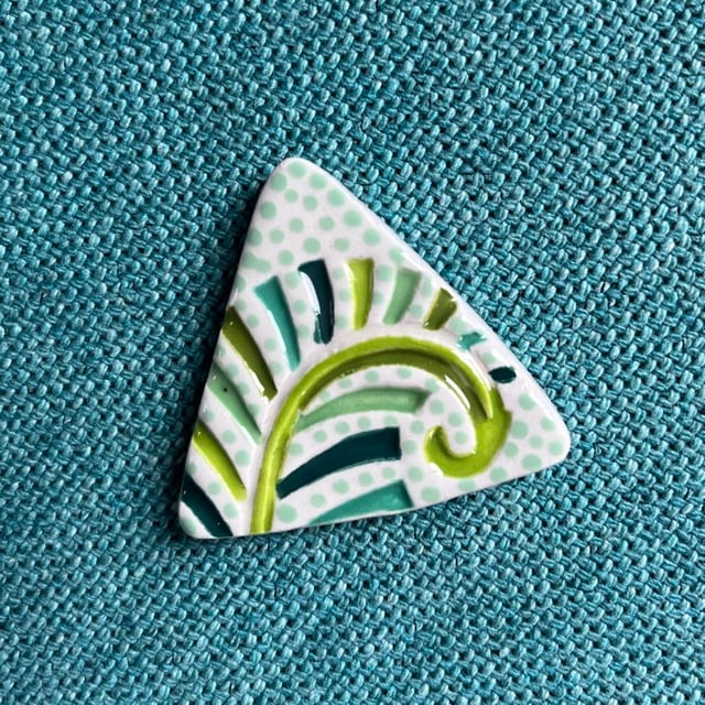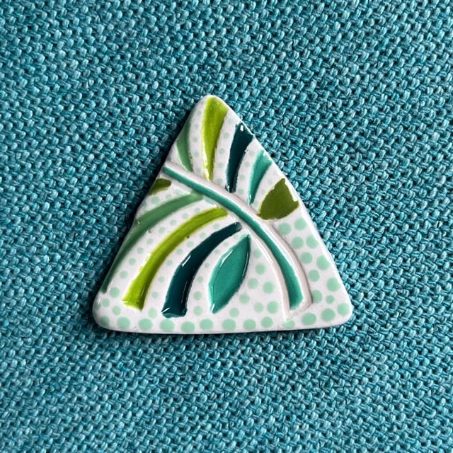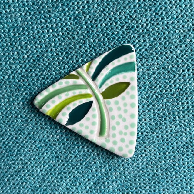 Handmade Ceramic Triangular Leafy Fern brooch, Hand Made Badge