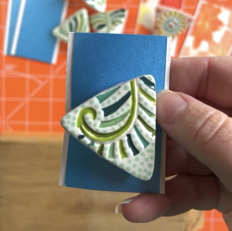 Next to the fun bit, applying colour! I hand paint each brooch using a combination of leafy green underglazes before dipping in a glossy transparent glaze and firing for the final time. A brooch pin is then attached to the reverse and ta-da it’s ready to wear!
