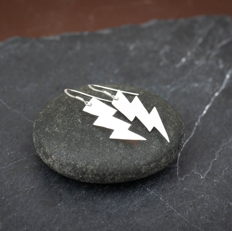 The lightning bolts measure approximately 3cm tall, with a 4cm drop. They are given a brushed polish finish, which I then hand polish to a high shine.