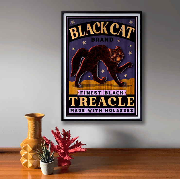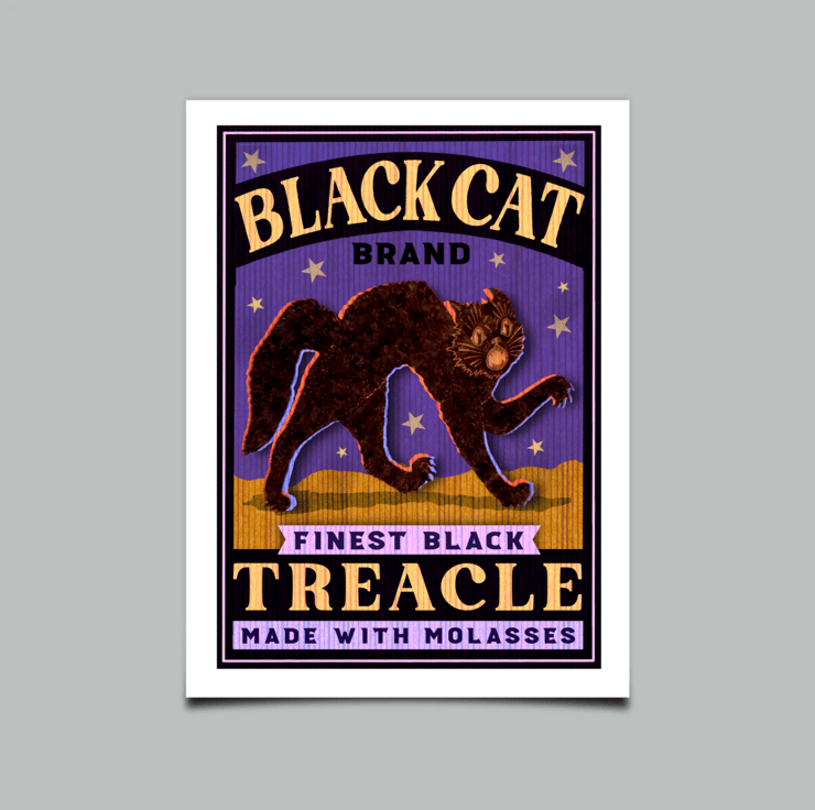 New art print designed in the style of a vintage advertising poster for treacle. Professionally printed onto 250gsm white card. Ready to insert into frames without the need for trimming or mounting. Available in A4 or A3. Please message me if you have any questions about this print.