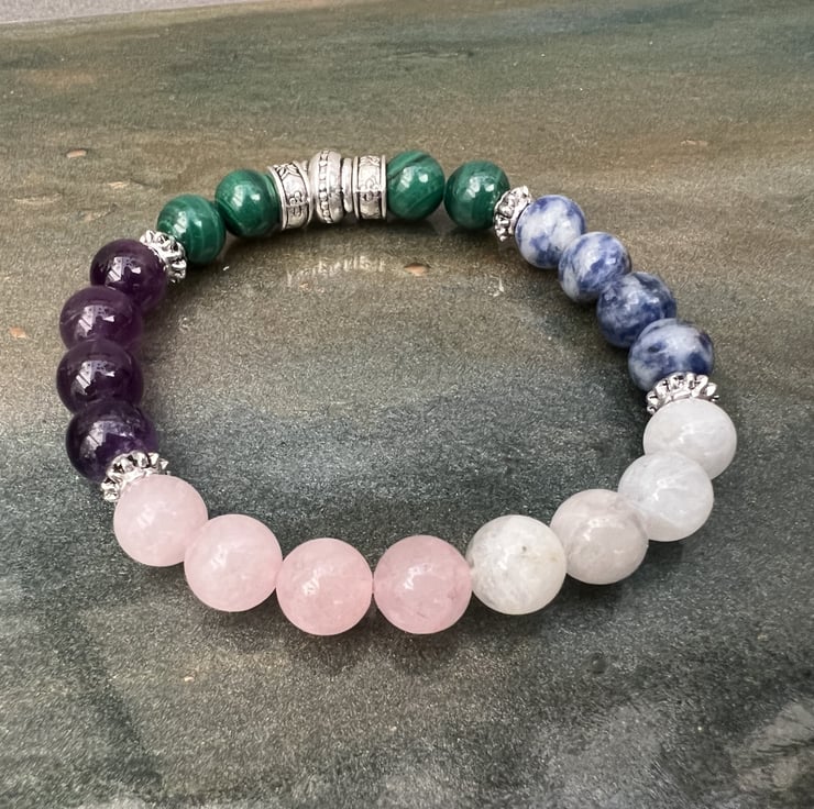 This bracelet is made up of a number of gemstones, all of which are believed to have attributes that can support the wearer in sleeping better.