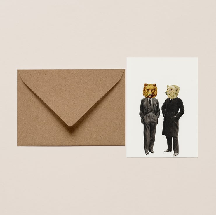Each card is giclée printed on mohawk card with a matte finish. Includes a brown kraft envelope within a protective biodegradable OPP bag.