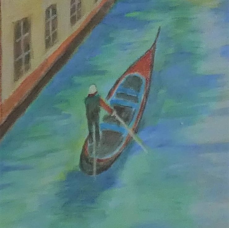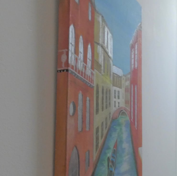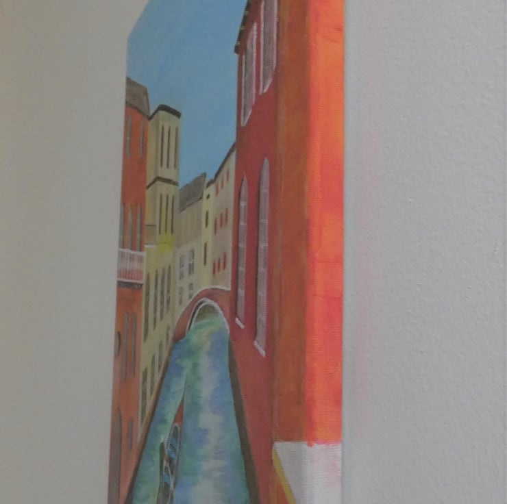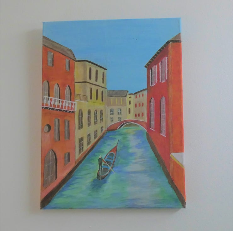 This one-off acrylic painting of a man in a Gondola is an original piece or artwork. This is not a print. It has been painted on a stretched box canvas and does not require a frame. The top, bottom and sides have also been painted. This would make a perfect gift for a number of occasions such as a housewarming gift, a gift for mum, a gift for dad, a new home gift or a Birthday gift.