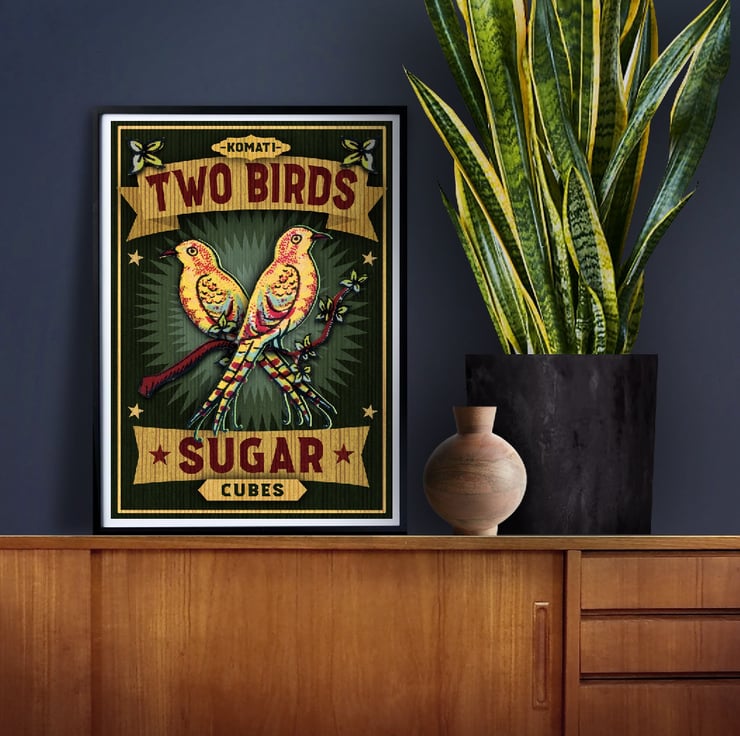 New art print designed in the style of a vintage advertising poster for sugar. Pairs nicely with our Antelope Cocoa Powder poster. Professionally printed onto 250gsm white card. Ready to insert into frames without the need for trimming or mounting. Available in A4 or A3. Please message me if you have any questions about this print.