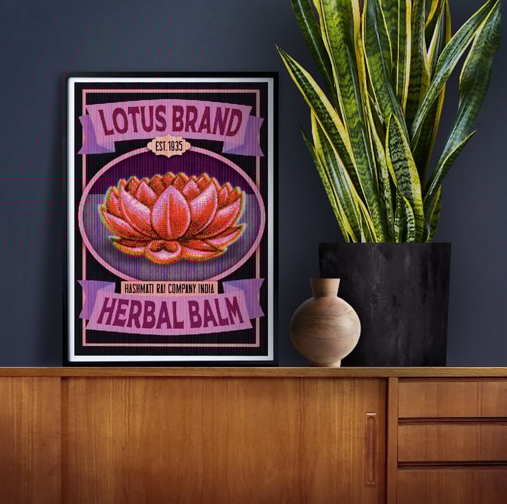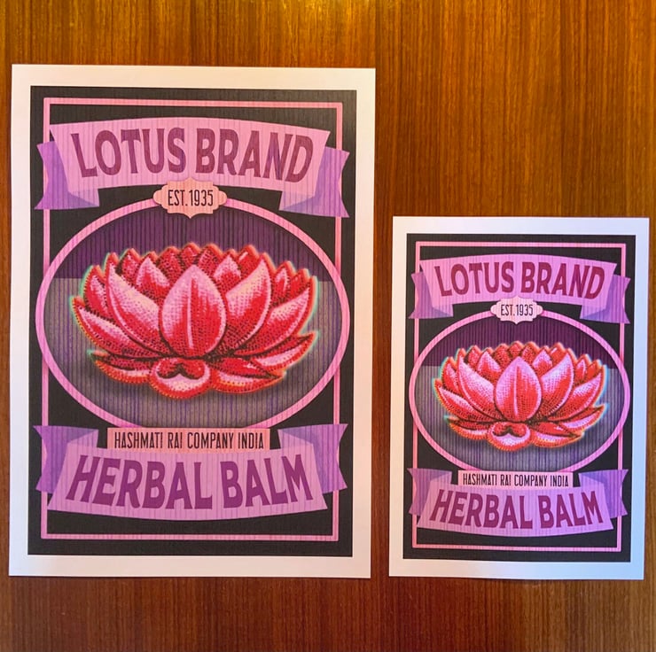 New art print designed in the style of a vintage advertising poster for a healing balm. Professionally printed onto 250gsm white card. Ready to insert into frames without the need for trimming or mounting. Available in A4 or A3. Please message me if you have any questions about this print.