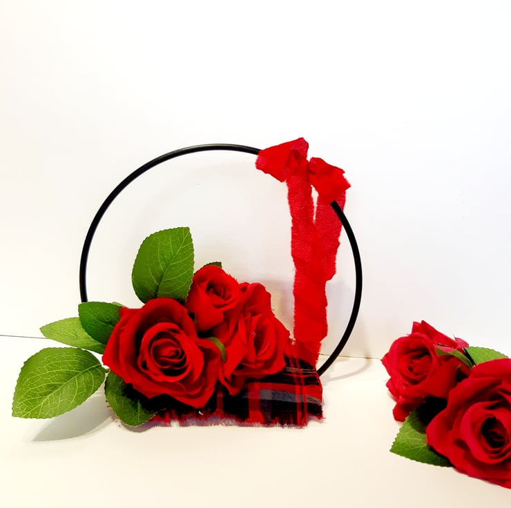 I saw these red roses recently and just loved the dense colour so bought them not really knowing what I was going to make with them, but then I remembered having some bamboo embroidery hoops and thought they would be the perfect way to show the roses on. Makes a really lovely gift for 'rose people' who love to receive red roses.