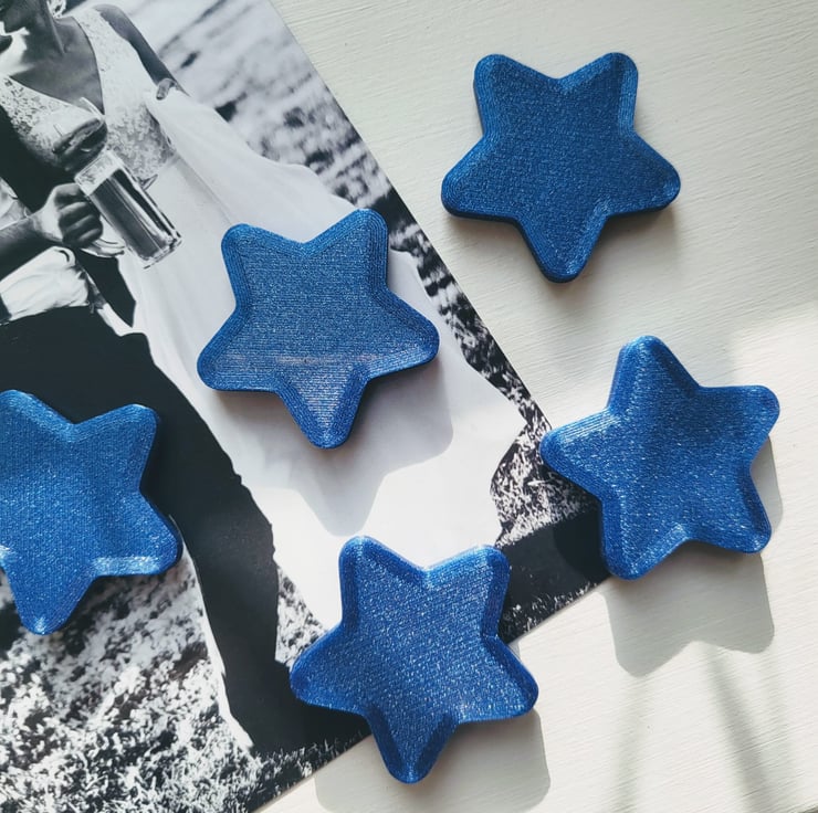Set of 5 Glitter Blue star fridge magnets Perfect for turning your fridge into an art gallery of your photos and artwork! Or reward your children's home schooling with their very own glitter blue star Lightweight, but with a strong magnet so that they don't slip