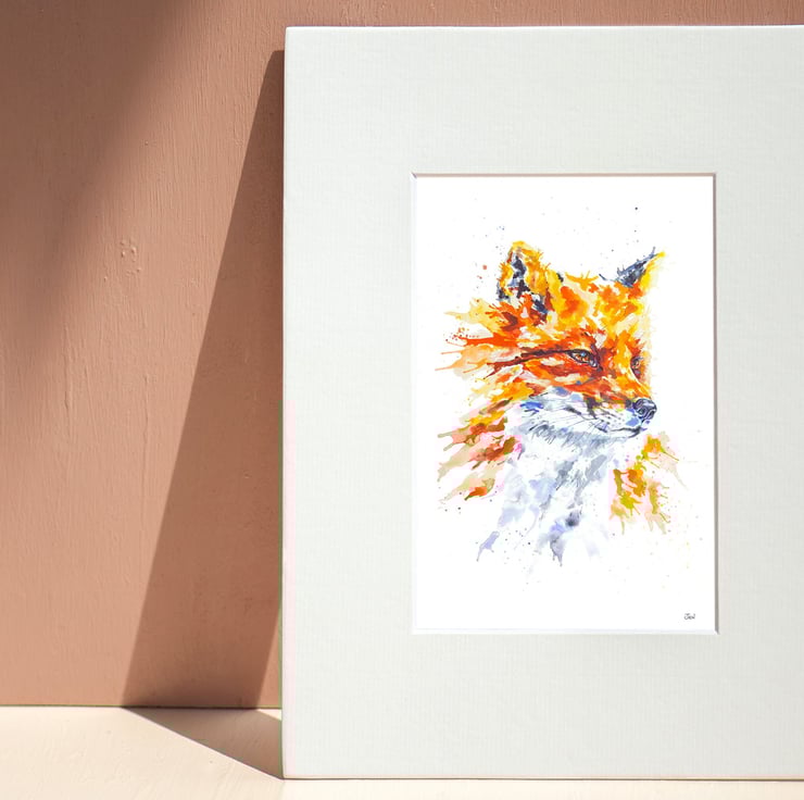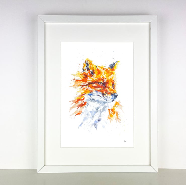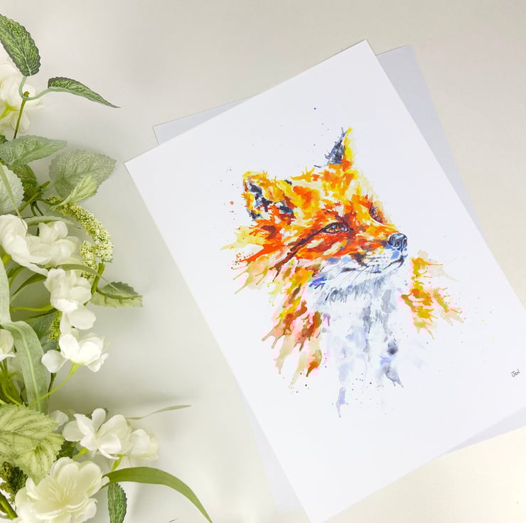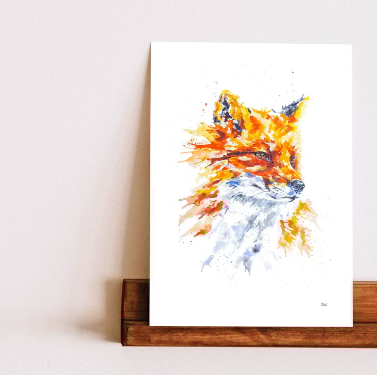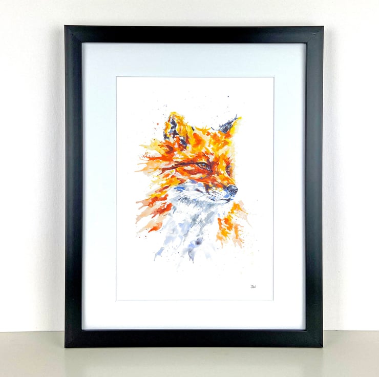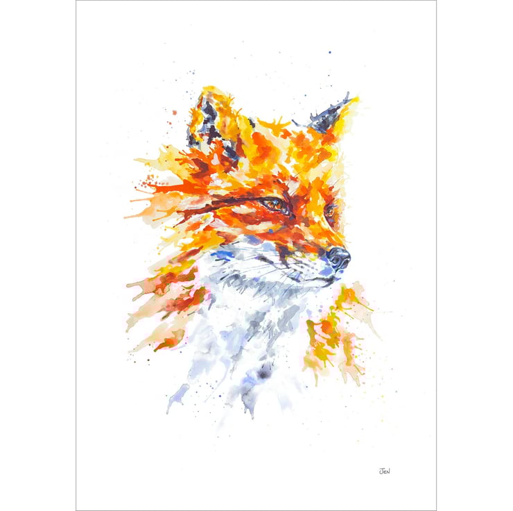 A beautiful fine art Giclee print of the watercolour painting 'Fox' by UK artist Jen Lewis.