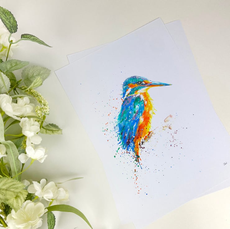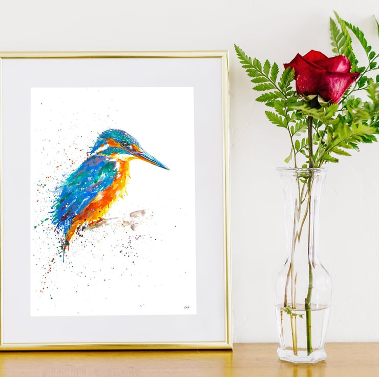 My original painting depicts the vivid beauty of one of the UK's most beautiful river birds. The unmistakable bright blue and orange of the kingfisher is captured in watercolour.