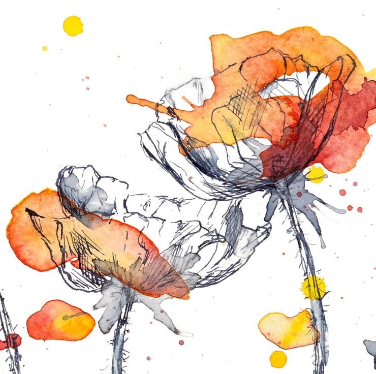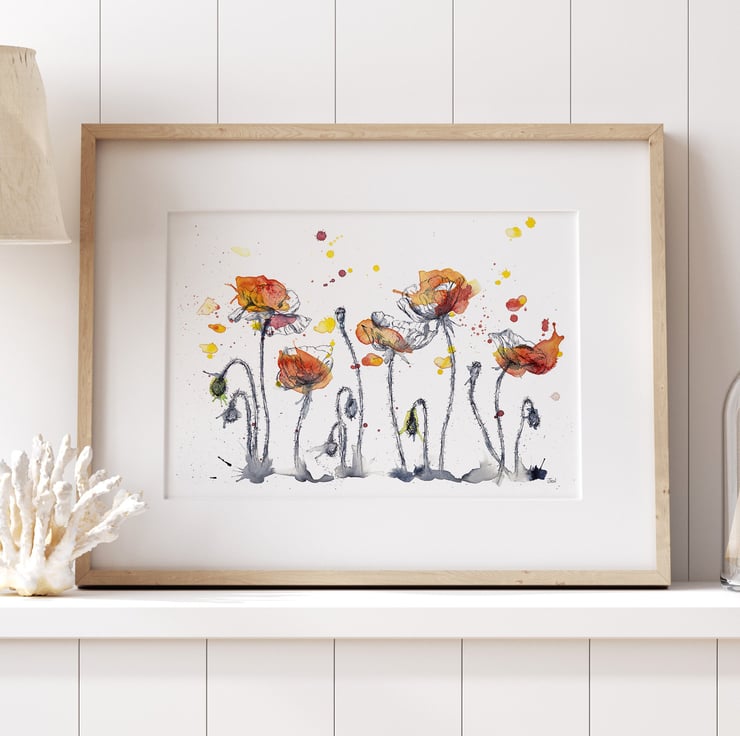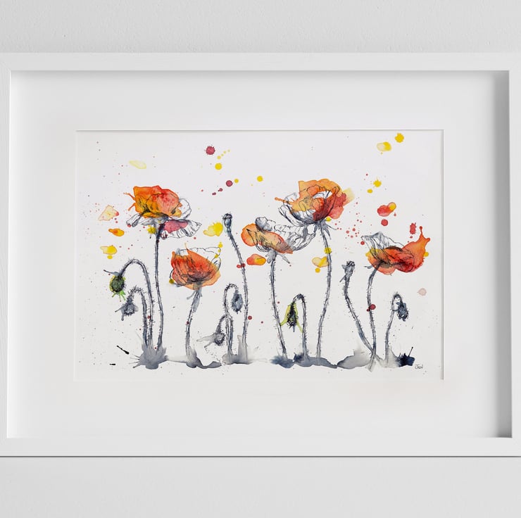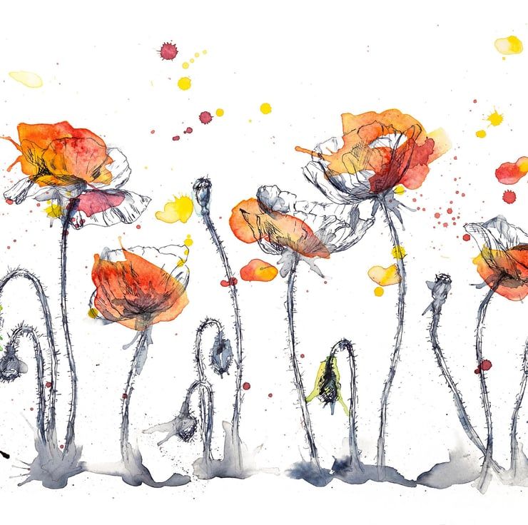 My original painting depicts the vivid beauty of one of the UK's traditional meadow flowers through flowing ink and watercolours. The flowers are illustrated using a handcrafted glass dip pen to capture the unique nature of the poppies.