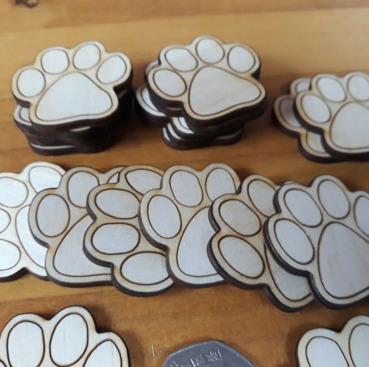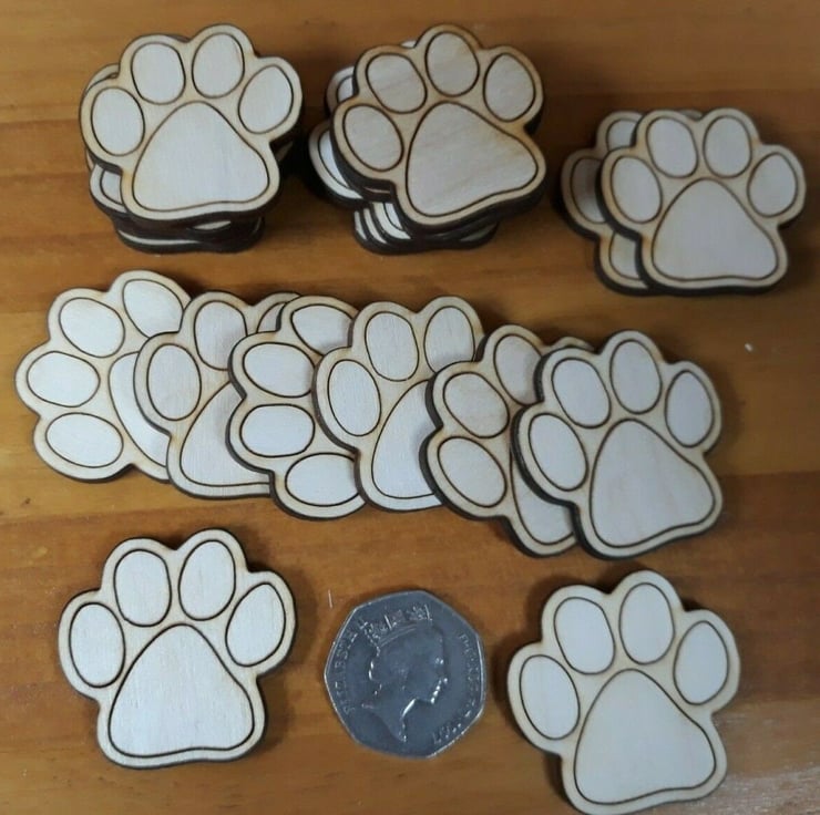 20x 40mm DOG ANIMAL PAW SHAPES 3mm - PLY SHAPES CRAFT TAG