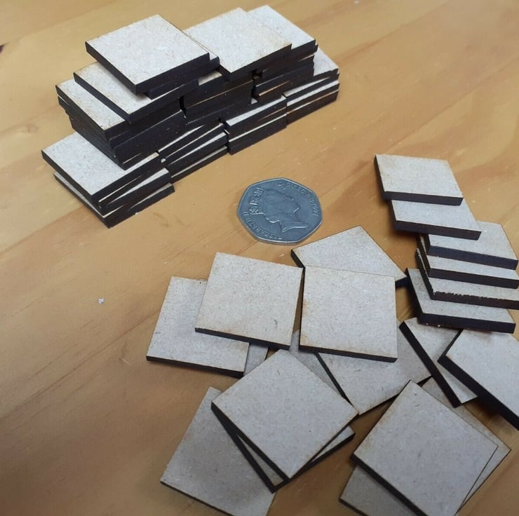 60x 25mm Square MDF Craft Shapes 3mm Blanks
