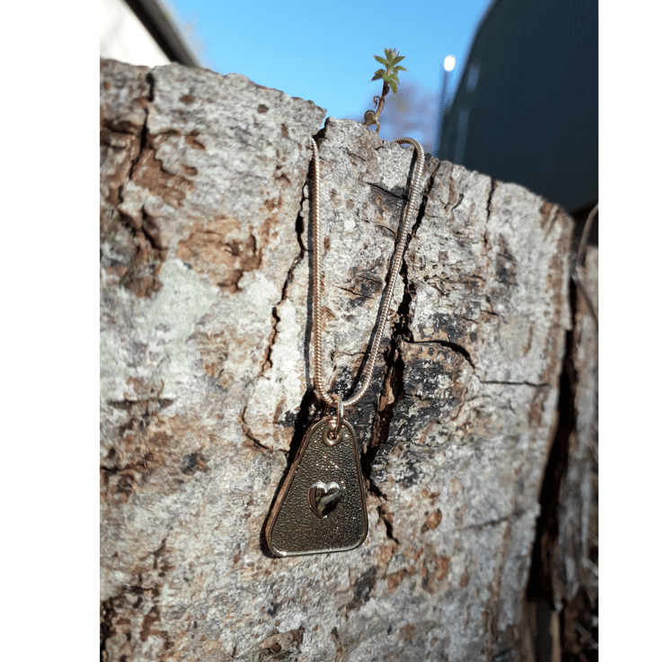 The heart sits on the centre of a slightly wonky triangle (by design), maybe to me this represents that life is never quite perf