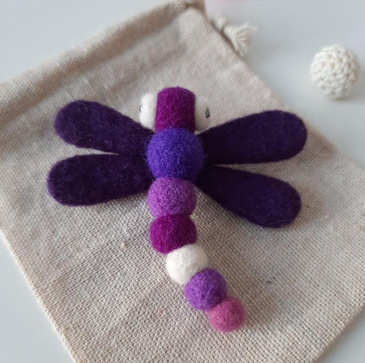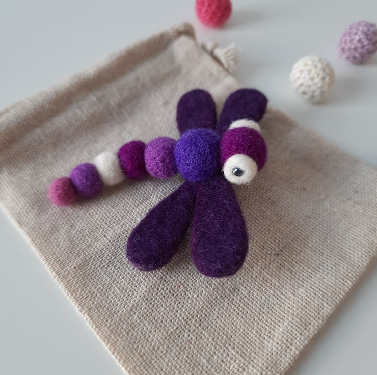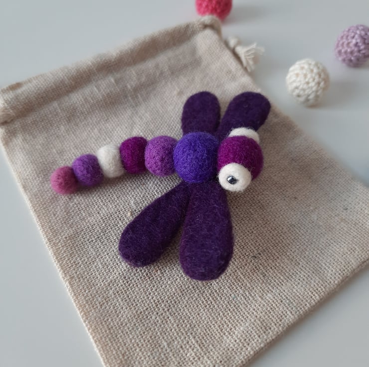 Each sphere has been wet & needle felted, with two seed beads in a coordinated tone sewn in as eyes- its wings have been wet felted and tidied up using a felting needle.