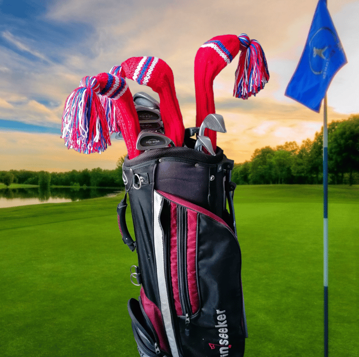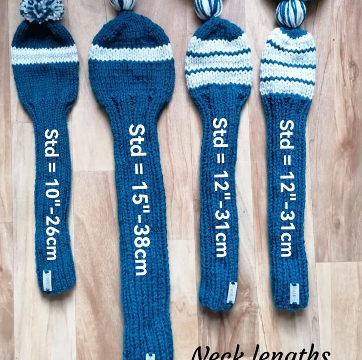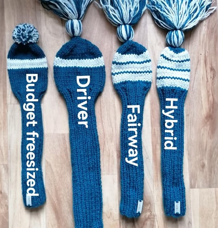 Bespoke, hand knit golf club covers available in a set of 3: