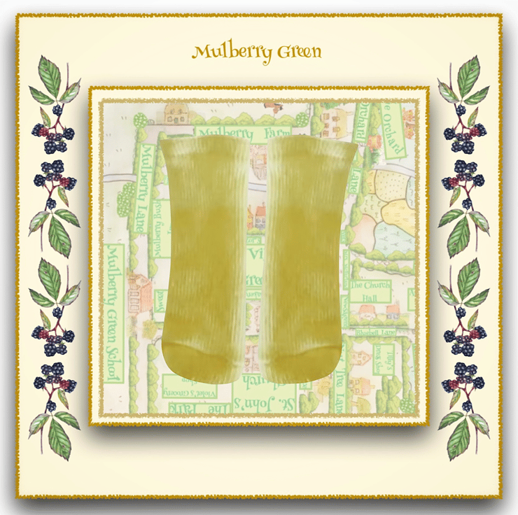 A little pair of lemon socks to fit the Mulberry Green characters. The socks look lovely with the little felt shoes.