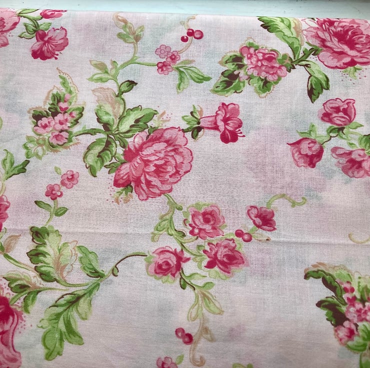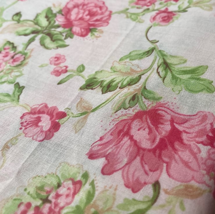 Gorgeous pink peonies fabric, pale pink background with cerise peony flowers and green stems, Mini Moto fabric made in Japan, this is a lovely ;lightweight cotton would make a lovely summer top, or gathered skirt!