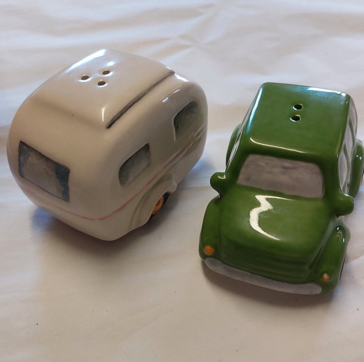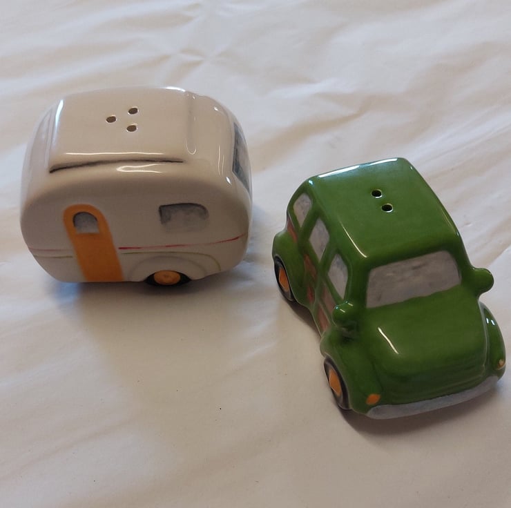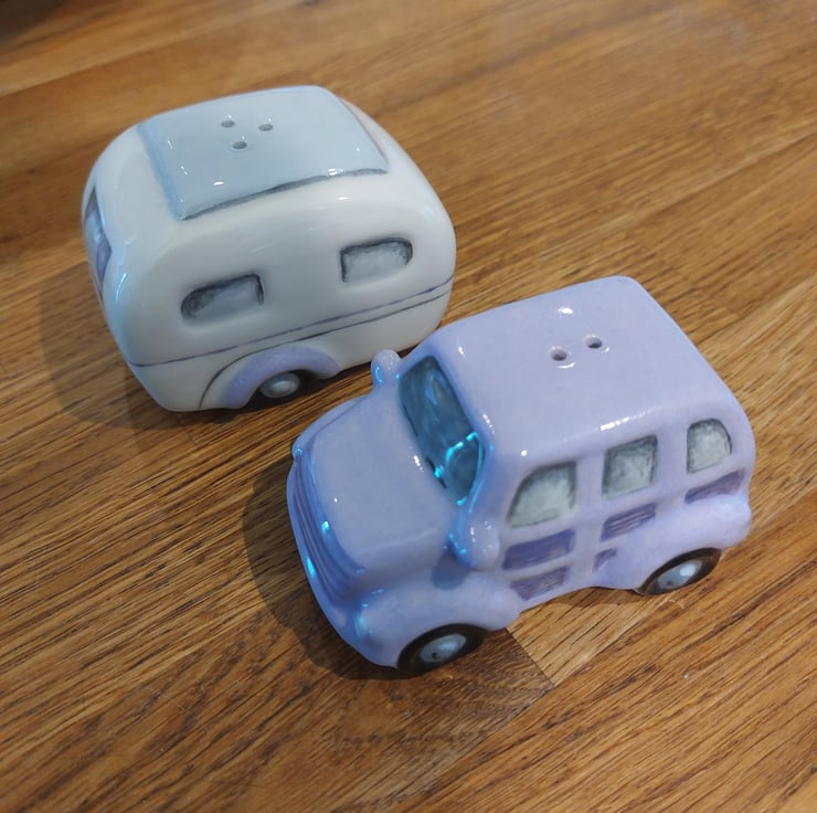 Personalised Hand-Painted Salt and Pepper Shakers – Perfect Gift for Caravan Enthusiasts