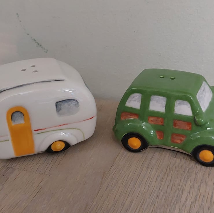 Elevate your caravan or holiday home with our charming hand-painted ceramic salt and pepper shakers! This delightful set adds a quirky touch to your table and makes an ideal gift for any caravan lover.