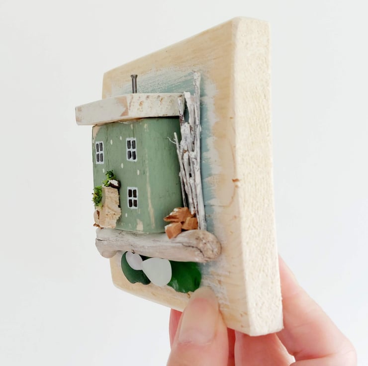 I began making miniature coastal scenes following a beachcombing trip to Morfa Beach in Conwy, north Wales. I was inspired by the colourful coastal cottages and the UK's smallest house that you can visit there. I also found an abundance of lovely chunky sea glass and pottery on the beach which I used in my early pieces, I have really enjoyed making them ever since that visit. This is the first time I've made a Christmas inspired piece and I'm just a little bit in love with this!
