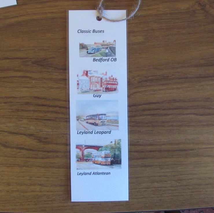 Paper bookmarks with image printed from my paintings and laminated,£2.00 each,after ordering state which one so i know which one to dispatch 1)Classic Commercials 2) Classic Cars 3)Classic Locomotives 4) Classic Bus 5) Northumberland Coast