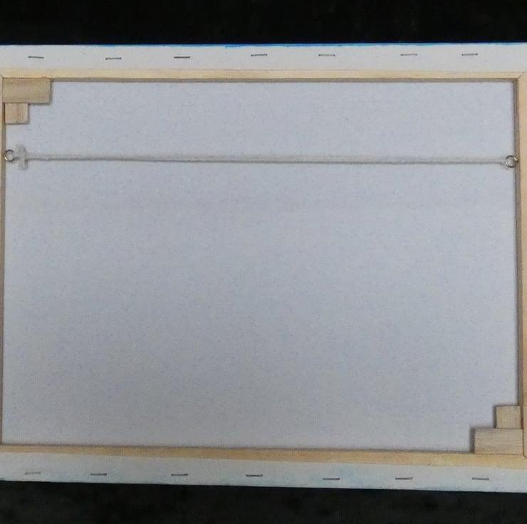 The size of the painting is approximately 31cms tall, approximately 41cms wide and approximately 1.5 cm in depth.