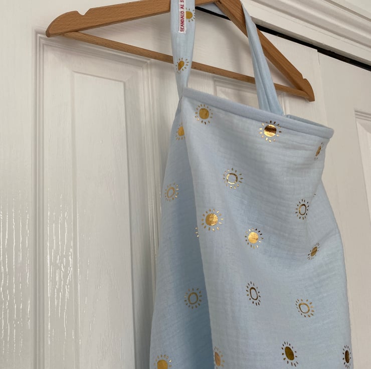 Lovely and soft muslin nursing covers with flexible boning; They allow to see the baby the whole time.