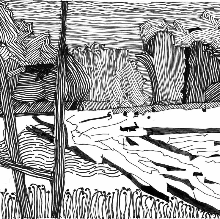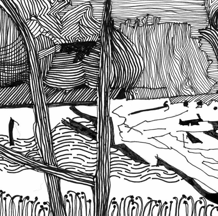 I was inspired to make this drawing having spent a while browsing through an old sketch book and I came across the original line sketch of this view that I made in 2010 and decided to develop it into this piece of work.