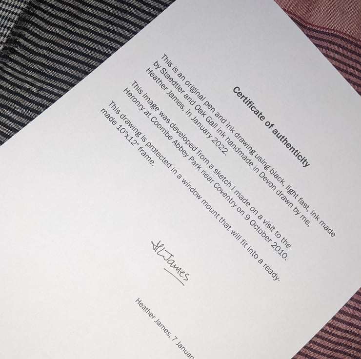 This is an original black and white drawing I made in 2022 that is based on a sketch I made while visiting Coombe Abbey some years ago. It will be sent in a window mount that measures 10 x 12 inches that will fit into an a ready-made frame of your choice. It is protected by a cello bag that you should remove before framing.