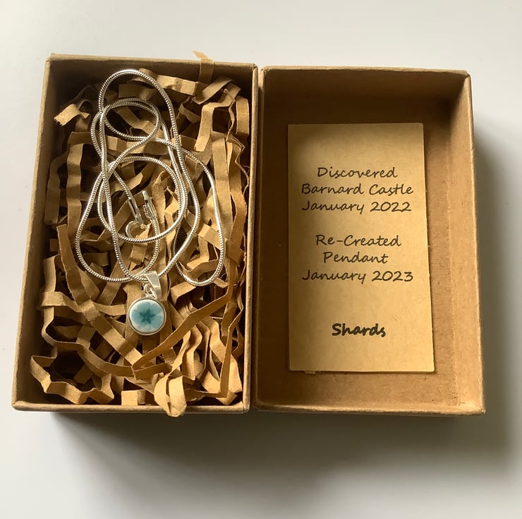 The shape and fit isn’t perfect, I use the shards created. The 925 Sterling Silver pendant tray is recycled and shows slight marks. The ceramic is secured into the tray by fit and glue.