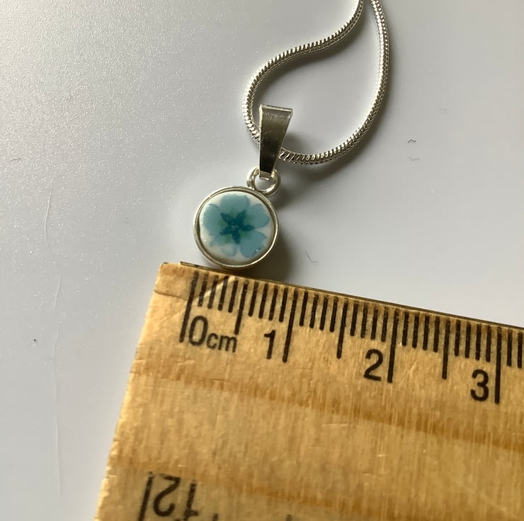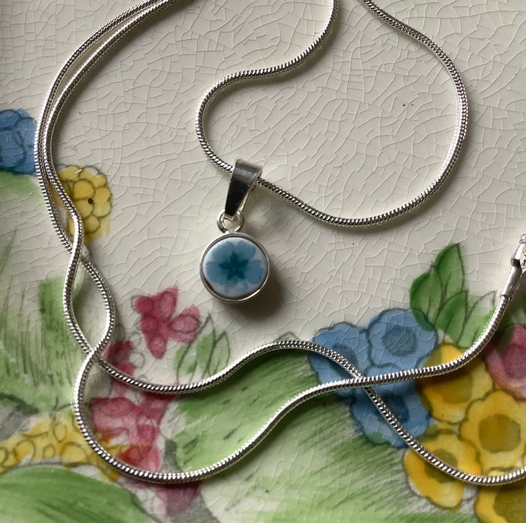 The idea is to use the ceramic as it brakes and use the shapes created to dictate what it might become. A very small shard broke from a plate, a lovely blue flower undamaged. I managed to sand it to fit a tiny recycled sterling silver pendant tray.