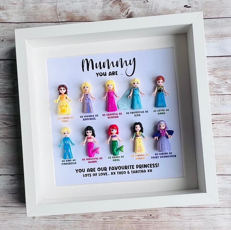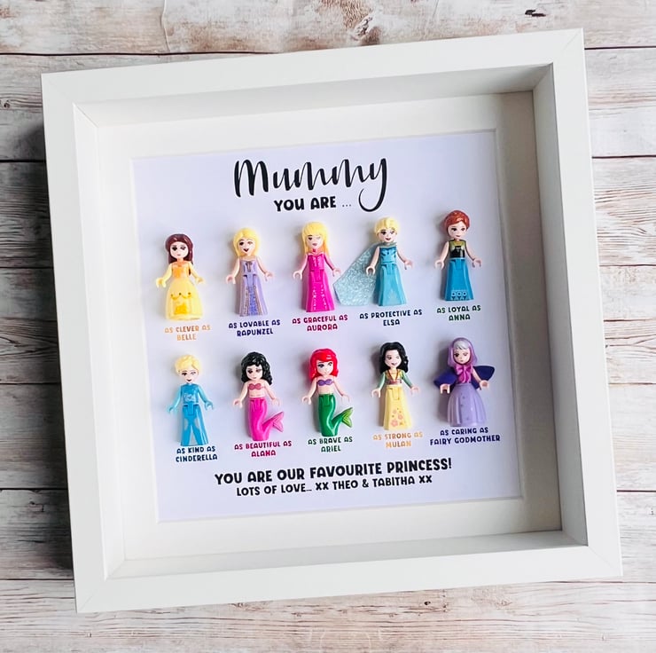 Each frame includes 10 minifigures and you can change the recipient name plus add up to two lines of your own text to the bottom to make this a truly personal gift.