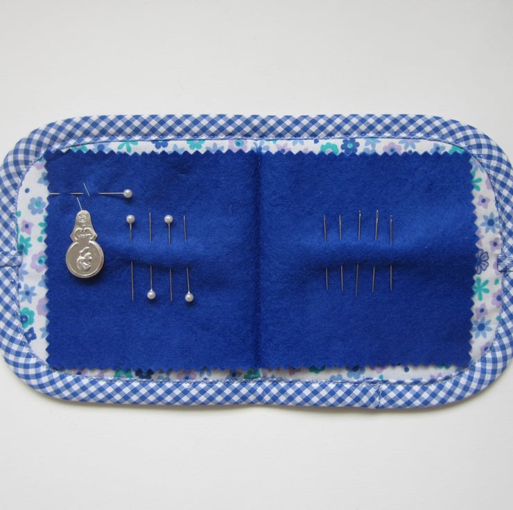 Inside there is a blue felt page complete with pins, needles and a threader.
