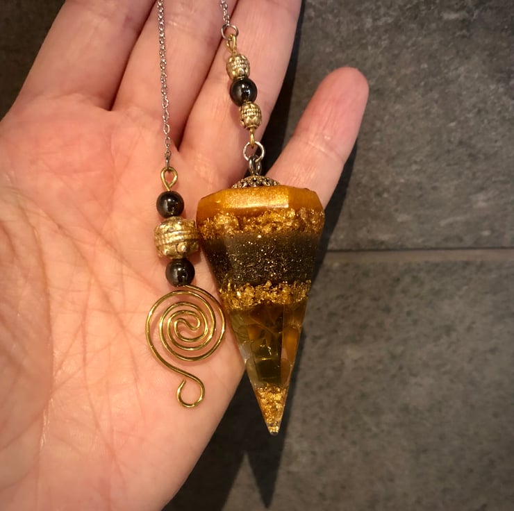 A custom made Crystal Energy Pendulum is not only a perfect gift for those who love the art of dowsing, divination or scrying, they are an excellent tool for Reiki healing and for those who wish to have a unique Crystal Energy or Orgonite piece to hang in the home, office or carry around.