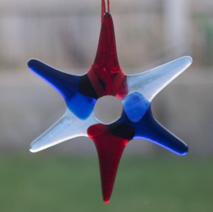 Our Fused Glass Stars make fantastic Decorations. They will happily hang in your window.