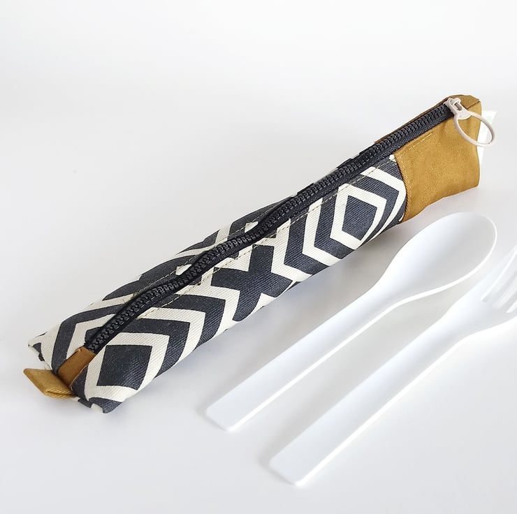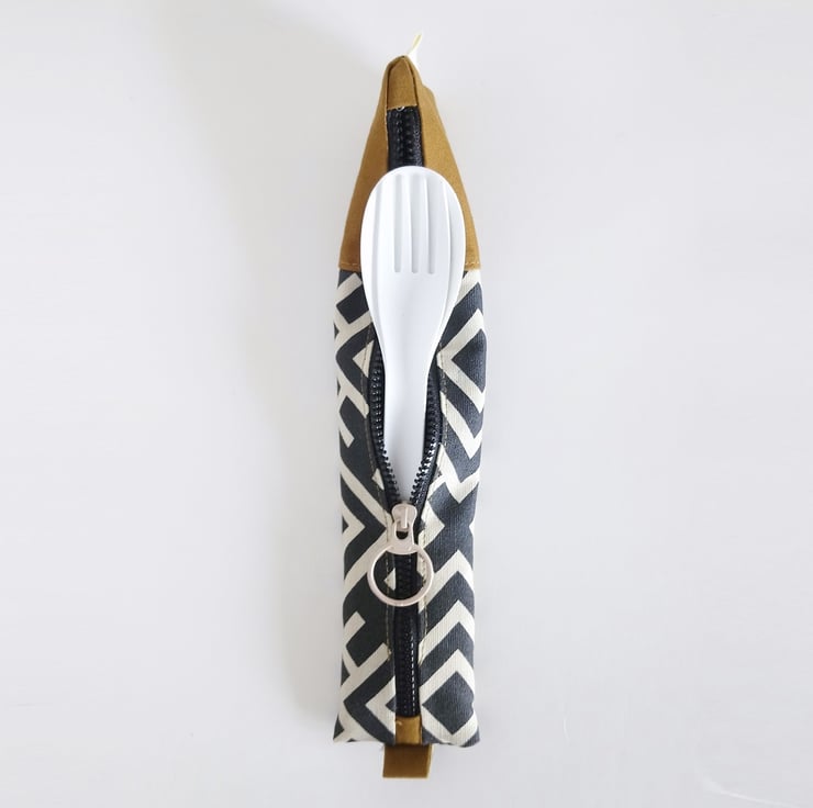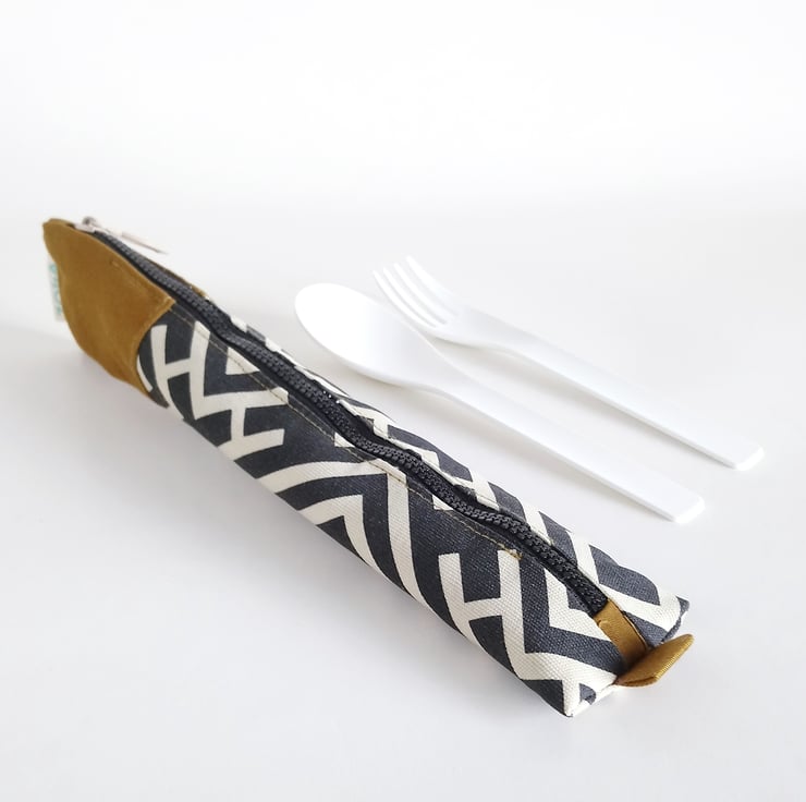 This fully lined triangle utensil case helps keep your own utensils/cutlery clean and tidy while moving around the city or going anywhere.
