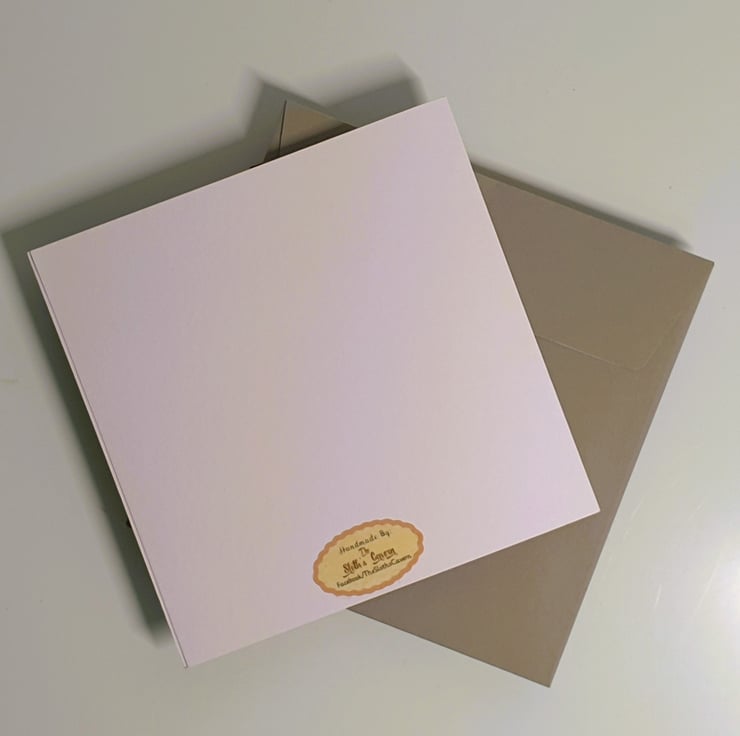 A small sticker with my shop details has been added at the back of the card and on the cellophane bag.