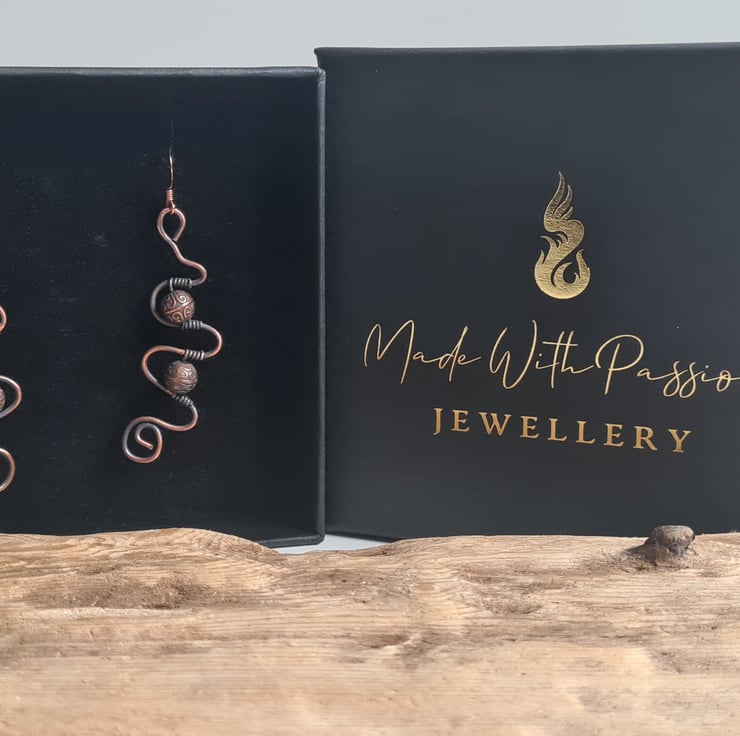 Handmade Unique Copper Dangle Drop Earrings Ladies Gift Boxed Jewellery