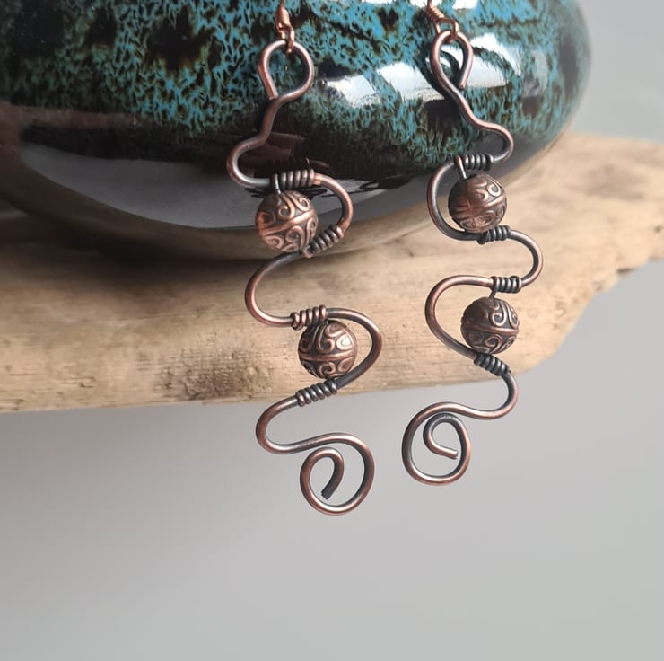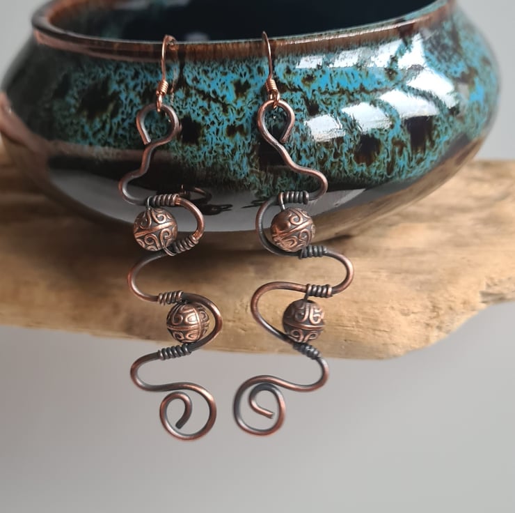 I have made these lovely handmade earrings using raw copper which has been antiqued, and gorgeous Chinese style copper beads. Finally finished with pure copper ear hooks. I have complimentary pendants available for these earrings, so please check my other lisitings
