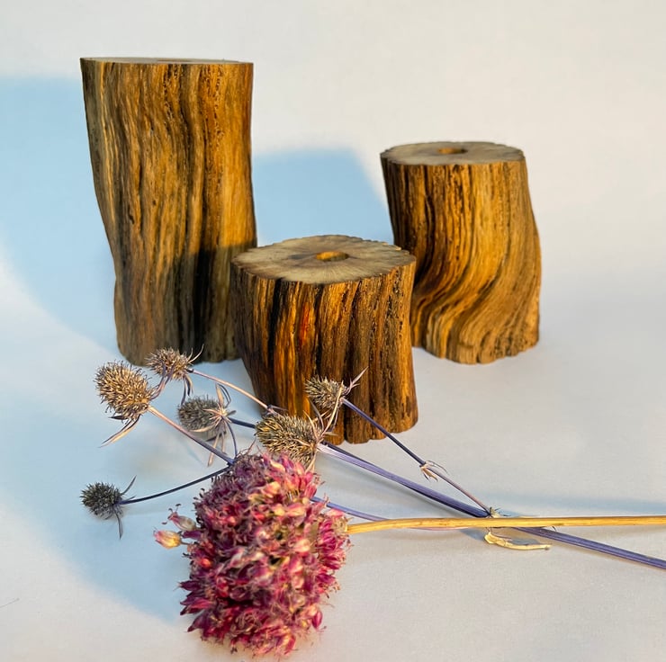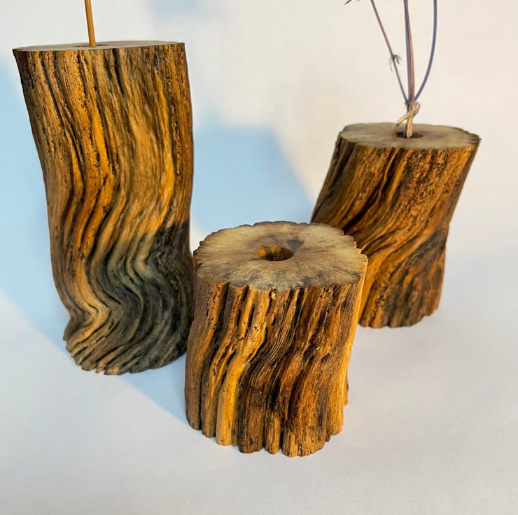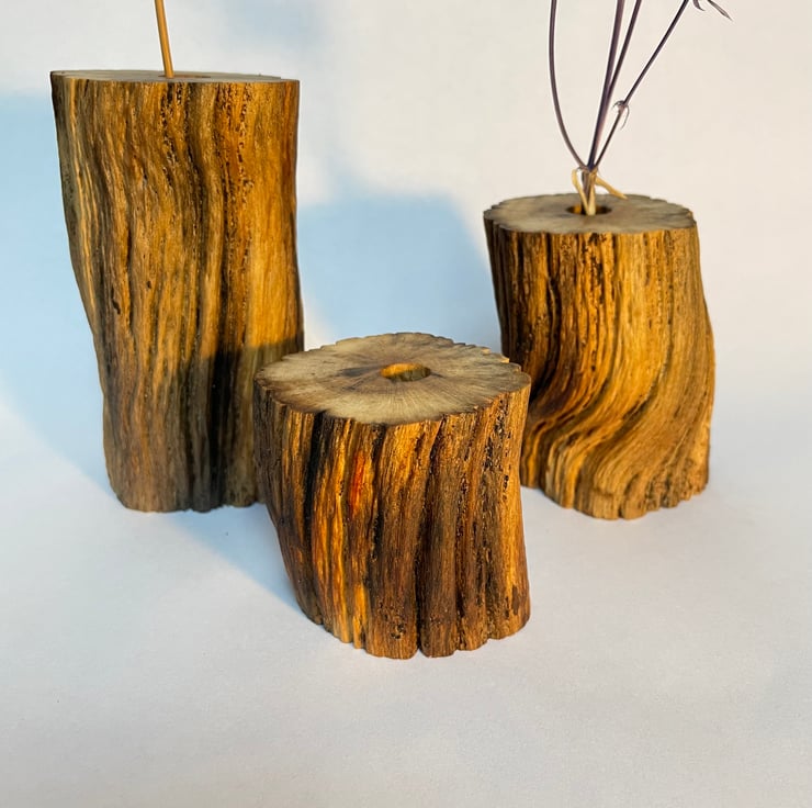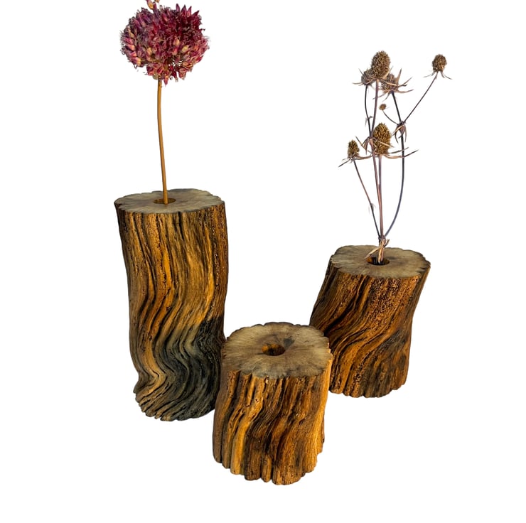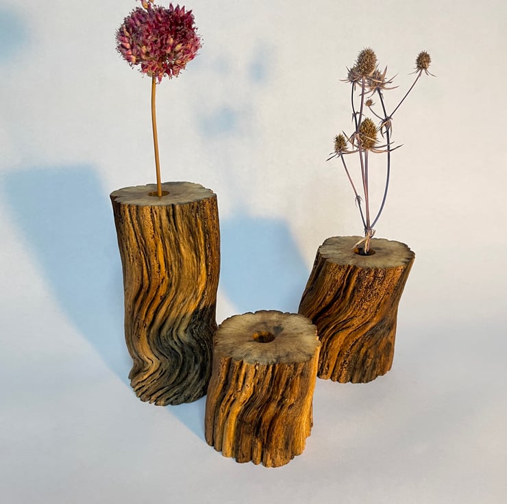 A collection of three Bud vases, suitable for holding dried grasses and dried flowers.