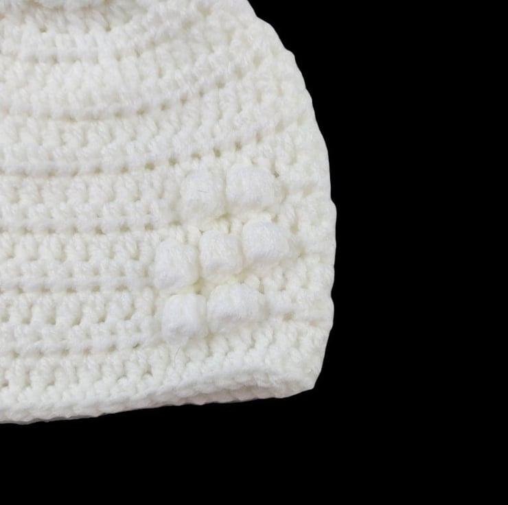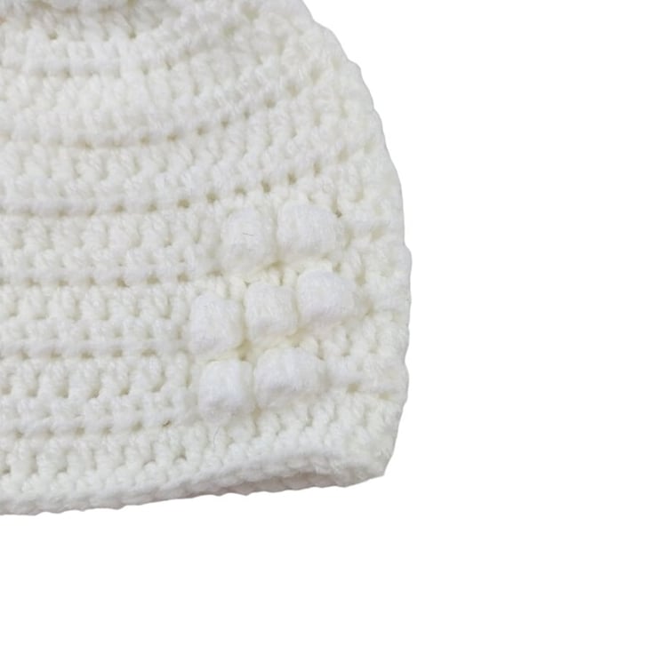 White Baby Crocheted Hat, a delightful accessory crafted to keep your little one snug and stylish during your outdoor escapades. Handcrafted with utmost care using aran weight lemon yarn, this hat ensures both warmth and comfort for your precious baby.