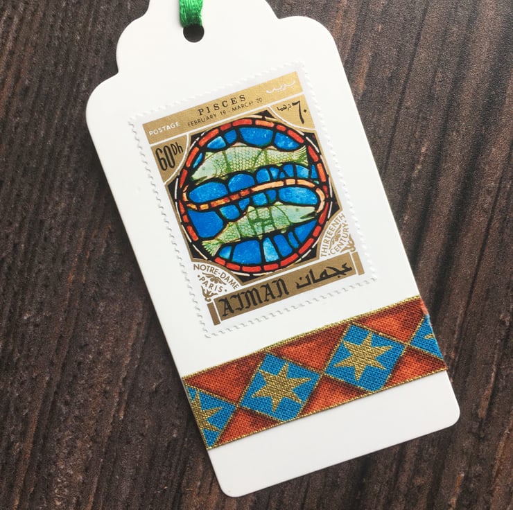I've also included a matching gift tag which has been made with a pretty stamp from Ajman and trimmed with a strip of fabric.
